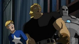 ![]() | Saison 2 - épisode 10 | Prisonnier de guerre Captain America se libère de sa cellule sur le vaisseau Skrull, délivre tous les autres héros et vilains, et tente de rentrer sur Terre... |