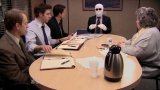 ![]() | Saison 6 - épisode 14 | The Banker A banker representing a potential buyer comes to the Scranton branch to interview the H.R. department before the sale goes through. |