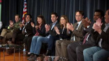 ![]() | Saison 9 - épisode 1 | New Guys Two new, young employees throw Dwight and Jim off balance. Andy returns from leadership training with a desire for revenge. |