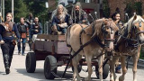![]() | Saison 6 - épisode 3 | Merci Une sirène brise le silence de la campagne et le bruit attire la meute de zombies vers Alexandria. Rick et ses compagnons doivent accélérer le pas... |