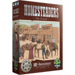 Homesteaders est un jeu d'enchères et de gestion des ressources dans lequel les joueurs enchérissent sur certains types de bâtiments, puis dépensent des cubes de ressources pour les construire. Les bâtiments confèrent des capacités, des revenus et des points ; certains automatiquement et d'autres nécessitant un travailleur.