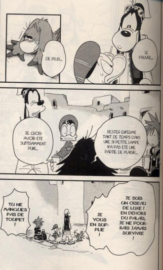 Sora, Dingo et Pluto retrouvent la trace de Mickey avant de tomber sur une porte bien étrange. Encore un volume rythmé mais très moyen.